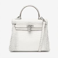 The Himalaya bag brings drama in all the right ways. Croc-embossed leather in a cool white finish, silver-tone hardware, and a structured silhouette make it a bold yet timeless piece. Spacious enough to fit tablets and elevate your every day.
